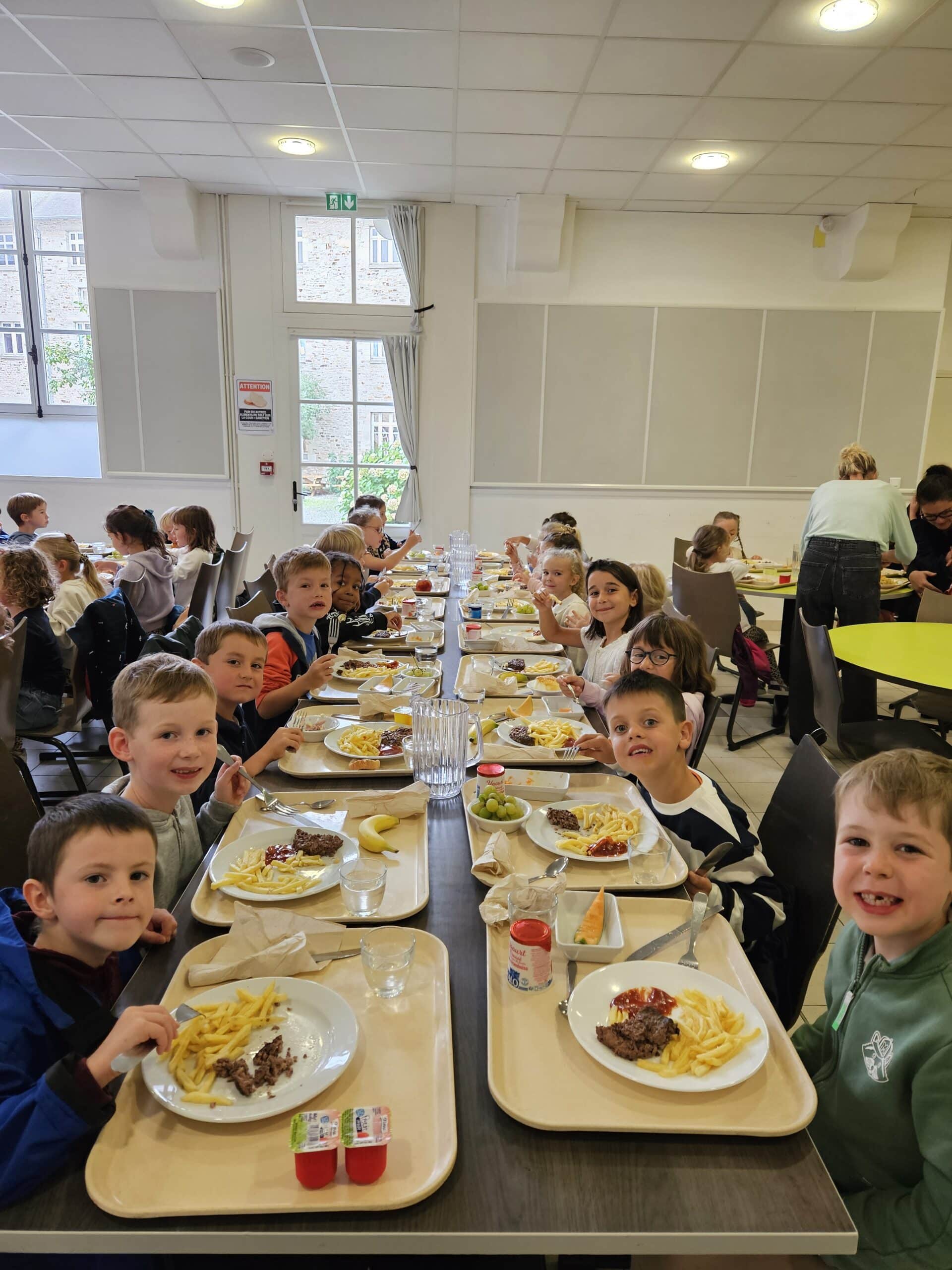 - Les élèves de l’école mangent au self par niveau à partir de 11h40. Les repas sont préparés chaque jour sur place par l’équipe de cuisine.